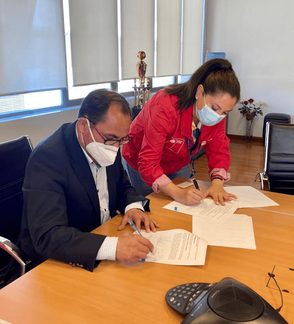 La seremi de Energía de Tarapacá, Ximena Cancino y el alcalde de la municipalidad de Alto Hospicio, Patricio Ferreira, firmaron el acuerdo para que alumnos y alumnas del Colegio Simón Bolívar de esta comuna, se instruyan respecto a las nuevas tecnologías y conocimientos en energía renovable, así como de eficiencia energética.